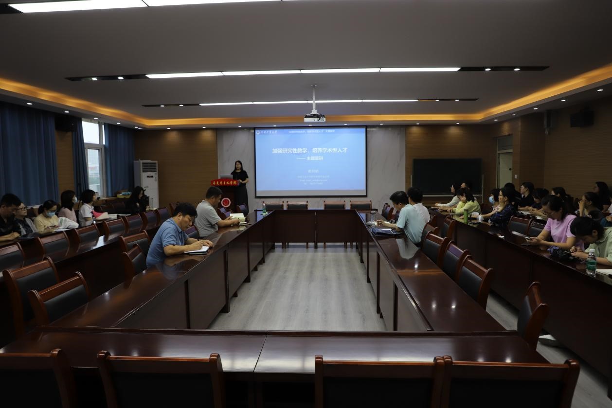 邀请学校研究性教学宣讲团专家戴晓鹂老师举行“加强研究性教学,培养学术型人才”主题宣讲,院领导班子成员和全体教师参加,会议由学院副院长丁建波主持。