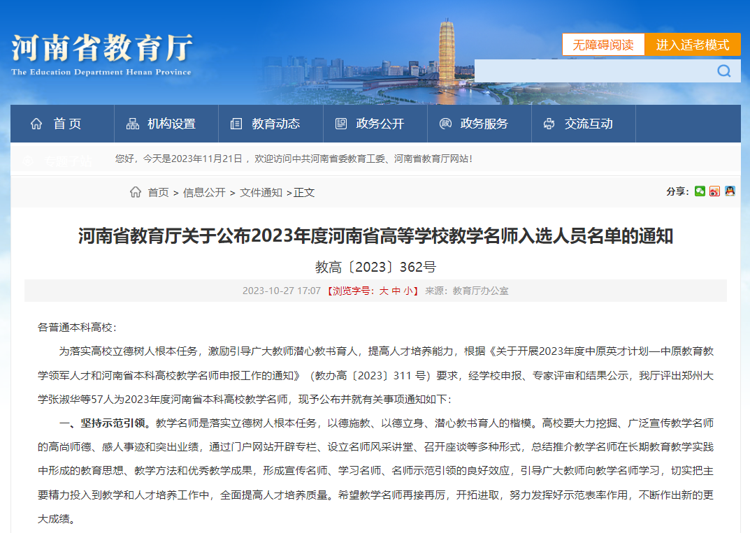 近日,河南省教育厅发布《关于公布2023年度河南省高等学校教学名师入选人员名单的通知》(教高〔2023〕362号),抖音黑料
