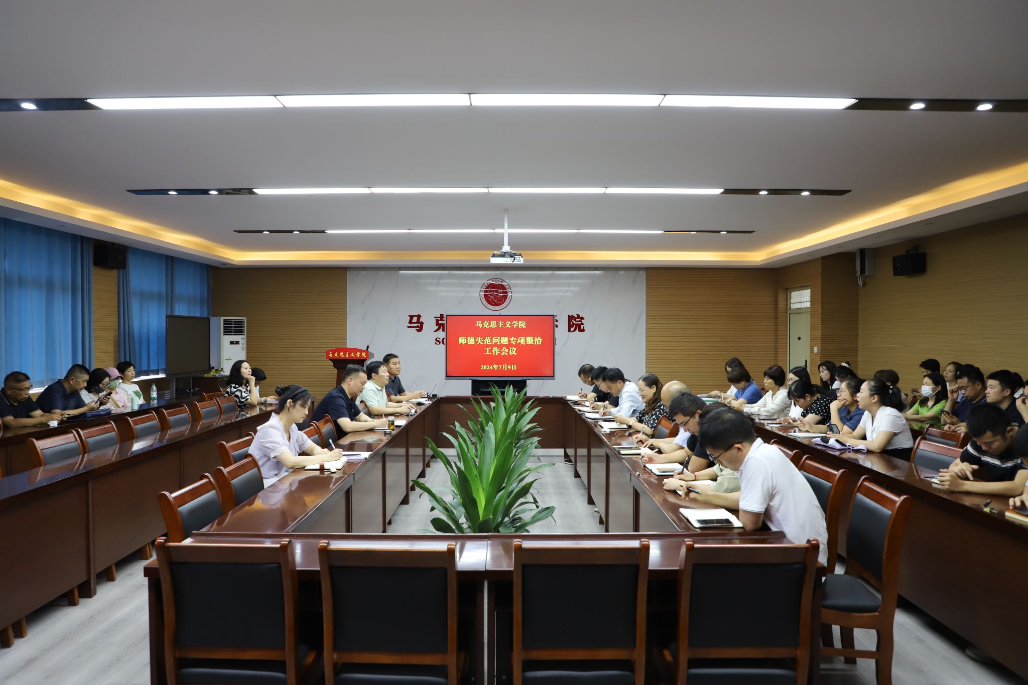 在3511会议室召开师德失范问题专项整治工作会议,学院全体教工参加会议。会议由学院党委书记李继周主持。