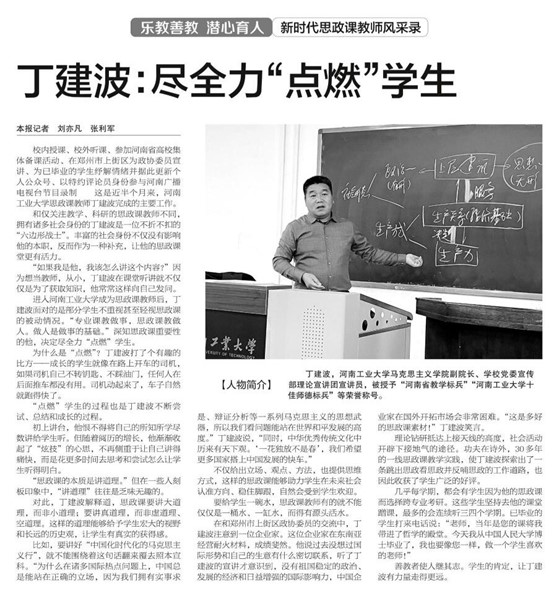 副院长丁建波长期耕耘思政课教学事迹进行专题报道。