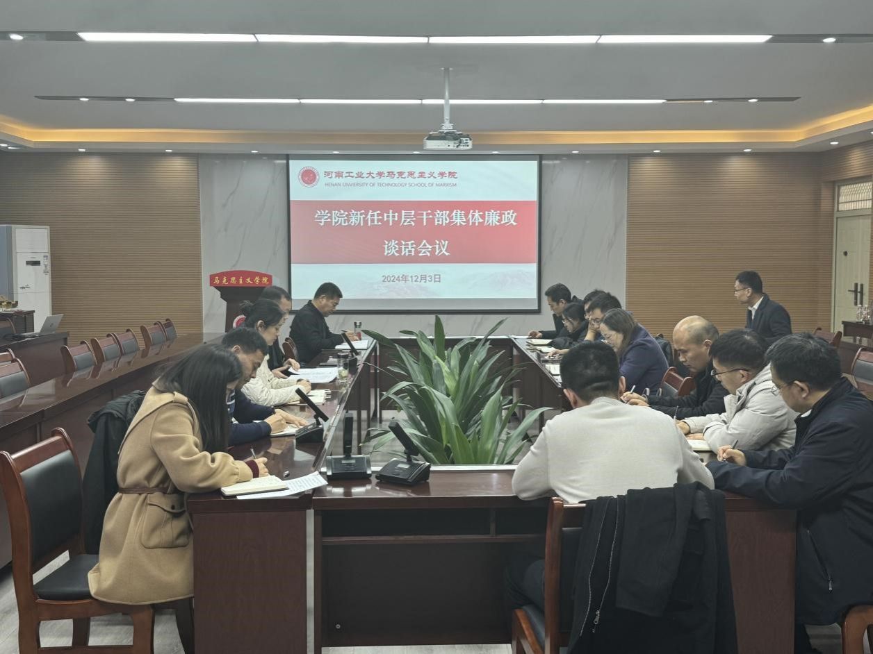召开新任中层干部集体廉政谈话会议。学院班子成员、中层干部参加了会议。党委书记李继周,党委副书记、纪委书记吴若旻对新任职干部进行了集体谈话。