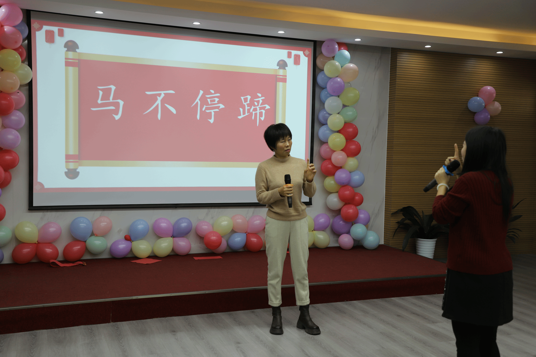 联欢会的表演正式拉开帷幕。形势与政策教研室的老师们带来合唱《中国人》,唱出了作为中国人的骄傲与自豪,瞬间点燃了现场的气氛。马克思主义基本原理教研室的歌曲串烧《我们的歌》,中国近现代史纲要教研室的合唱《我们欢迎你》、《相亲相爱》,思想道德与法治教研室白海燕老师的独唱《大海啊故乡》,马克思主义基本原理教研室曾艳老师的独唱《如愿》,思想道德与法治教研室王燚老师的独唱《万疆》,用不同风格的歌曲展现了各自的风采,或深情婉转,或欢快活泼,赢得了台下观众的阵阵喝彩。