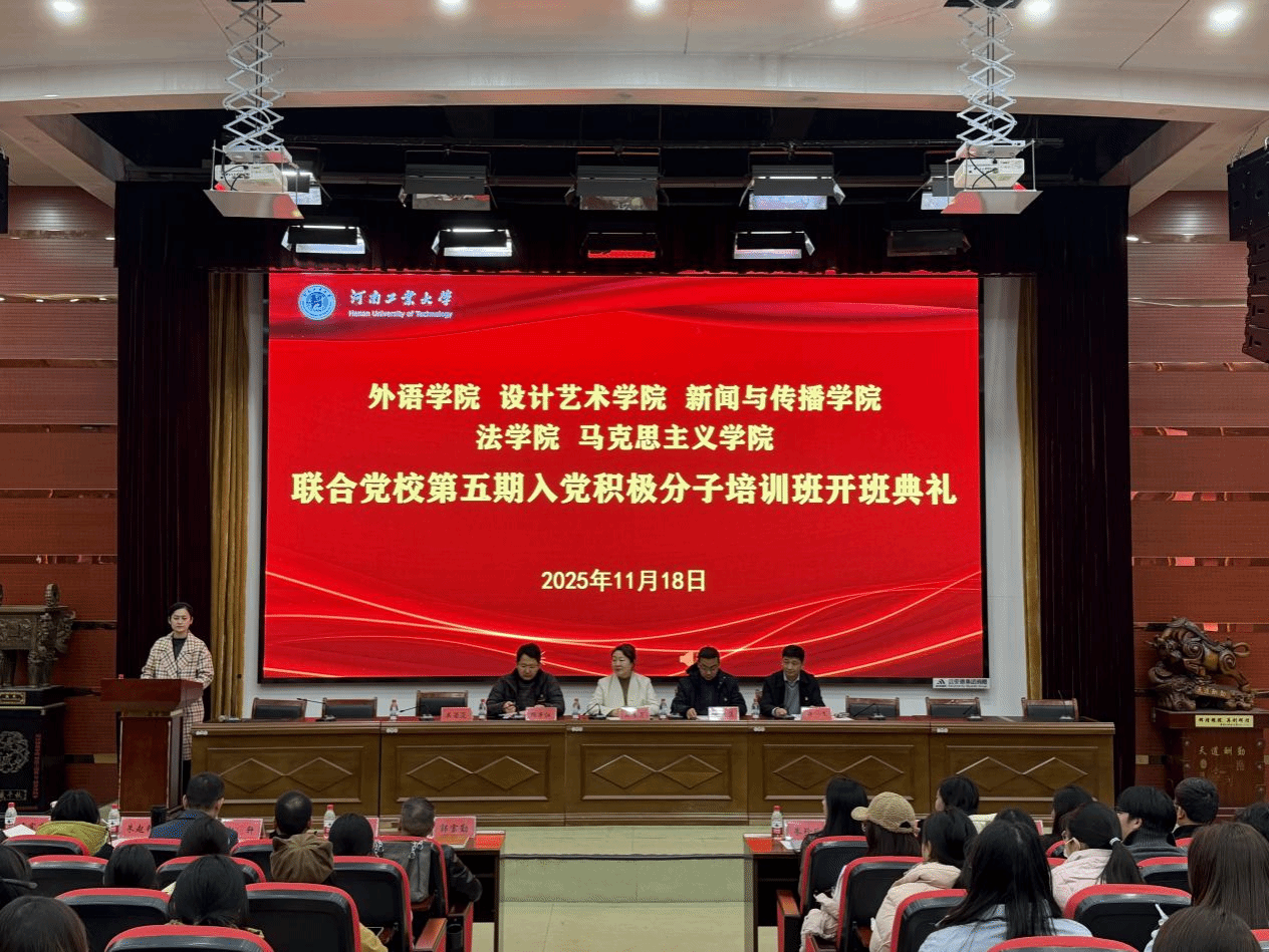在8号楼8527会议室隆重举行了联合党校第五期入党积极分子培训班开班典礼。郑纺机党委委员、工会副主席、机关党总支书记郭富勤,郑纺机加工制造部冷作工部生产班长、全国劳动模范郭超,郑纺机党委工作部副部长赵轩、郑纺机党委工作部宣传主管朱起锋,外语学院党委书记王云涛、设计艺术学院党委书记段慧子、新闻与传播学院党委书记杨子江、法学院党委书记许文,以及外语学院党委副书记王晓东、设计艺术学院党委副书记朱玲玲、新闻与传播学院党委副书记张小鸥、法学院党委副书记张翠华和联合党校第五期全体入党积极分子参加典礼。典礼由抖音黑料