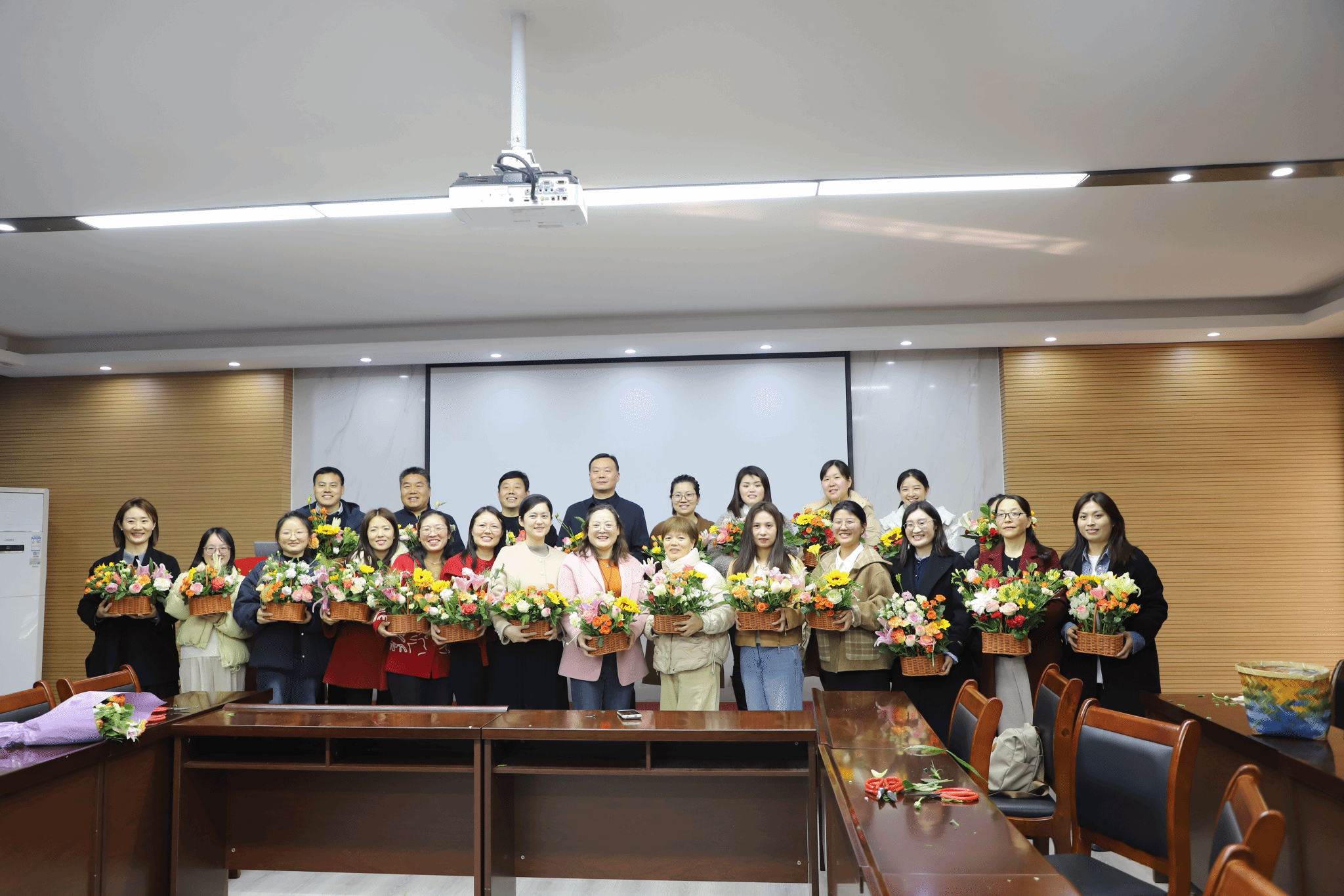 活动尾声,教职工们纷纷展示自己的插花作品,并合影留念。镜头前,大家手捧花艺作品笑靥如花,定格下这一温馨时刻。参与活动的教师纷纷表示,此次活动不仅舒缓了工作压力,更在花香与笑语中增进了同事间的情谊。“平时忙于教学科研,很少有机会静下心来感受生活之美。今天与姐妹们一起插花、交流,让我感受到学院大家庭的温暖。”资深教师张伟青感慨道。