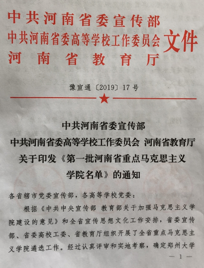 继2017年马克思主义理论学科获教育部评估C_和河南省第9批重点学科后,一路高歌猛进,喜报频传。先是国家社科基金再中1项,实现7年不断线,目前共承担10项国家社科基金项目的辉煌成绩。接着又首次获中河南省教育厅哲学社会科学基础重大科研项目和河南省哲学社会科学优秀学者资助项目2项重大项目,再次,马克思主义理论学位授权点顺利通过学校评估,并获得学校“博士点建设单位”资助。