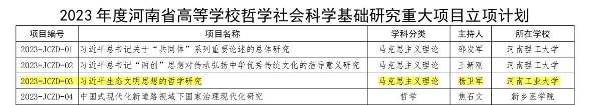 杨卫军教授的基础研究重大项目《习近平生态文明思想的哲学研究》成功立项。