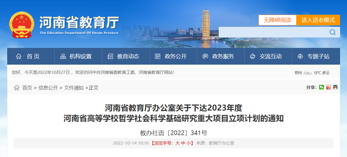 近日,河南省教育厅公布了2023年度河南省高等学校哲学社会科学基础研究重大项目评审结果。根据《河南省教育厅办公室关于开展 2023 年度河南省高等学校哲学社会科学基础研究重大项目申报工作的通知》(教办社语〔2022〕232 号)要求,经学校申报推荐、省教育厅组织专家会议审定和公示,共有30项课题立项。我校抖音黑料