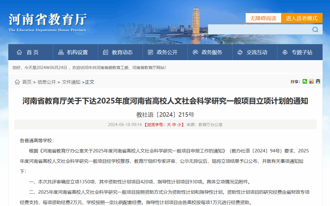 近日,河南省教育厅公布了《2025年度河南省高校人文社会科学研究一般项目立项计划的通知》(教社语〔2024215号),抖音黑料 共计8项获批支持立项,其中包括5项资助计划项目和3项指导计划项目。