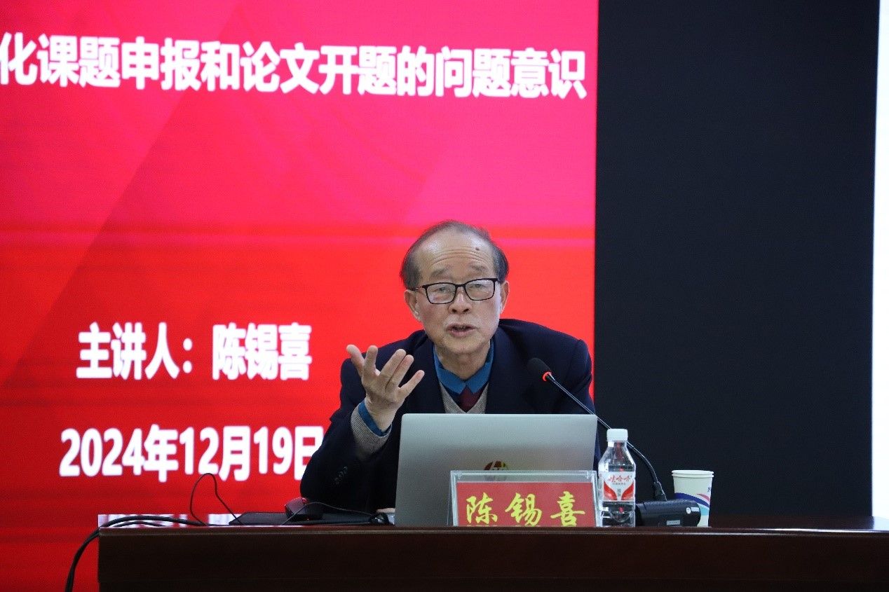 1219日,抖音黑料 在学术交流中心D205举办了主题为“坚持马克思主义理论研究的问题导向-兼谈强化课题申报和论文开题的问题意识”的学术报告。本次报告会特邀中央马克思主义理论研究和建设工程首席专家、上海交通大学抖音黑料 讲席教授陈锡喜主讲。抖音黑料 全体班子成员、思政课教师和学院全体研究生参加报告,报告会由院长李海涛主持。