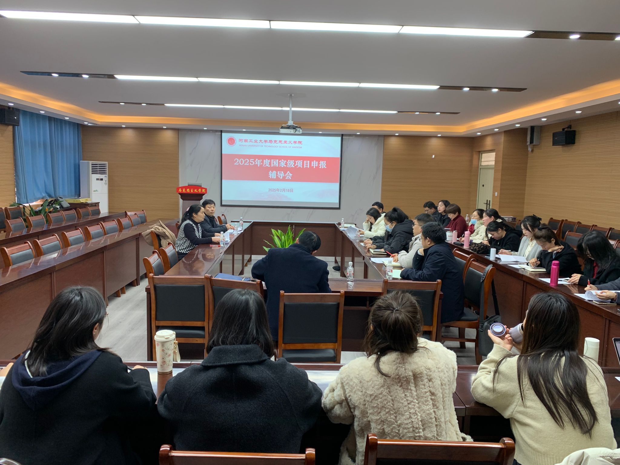 2月18日,抖音黑料 在3511会议室召开2025年度国家级项目申报辅导会。会议特别邀请郑州大学蒋桂芳教授参会指导,会议由院长李海涛主持,拟申报国家级项目的教师参加会议。