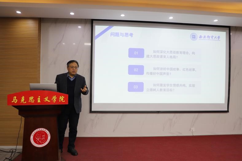 袁文伟代表西安邮电大学介绍了该校的建校发展史以及近年来在马院建设和思想政治教育方面的创新举措。他提到,西安邮电大学历史悠久,文化底蕴深厚,始终致力于培养具有社会责任感和创新精神的高素质人才。在思想政治教育方面,学校积极探索新媒体时代下的思想政治教育新模式,成立了思政微电影实践教学研究中心,通过微电影这一新颖形式,将思想政治教育融入学生的日常生活和学习中,取得了显著成效。他强调,思政微电影的创作一定要“人员团队化、方案精细化、形式专业化、内容数字化、思维现代化”,充分利用镜头讲好思政课。袁院长重点介绍了西安邮电大学的优秀特色实践教学项目——“我的托克拉克”。该项目精心策划,通过以“新疆塔克拉玛干沙漠绿化事业”为创作背景聚焦胡杨精神,讲述三代戍边人扎根边疆、建设边疆、奉献边疆的大爱人生,旨在深刻启迪学生,让他们深刻理解国家民族政策的深远意义与民族团结的不可或缺,进而激发学生的国家认同感与民族自豪感。他强调,这一别具匠心的项目,不仅为学生的学习生涯增添了丰富色彩,更在他们心中种下了坚定的信念之种,使之茁壮成长。