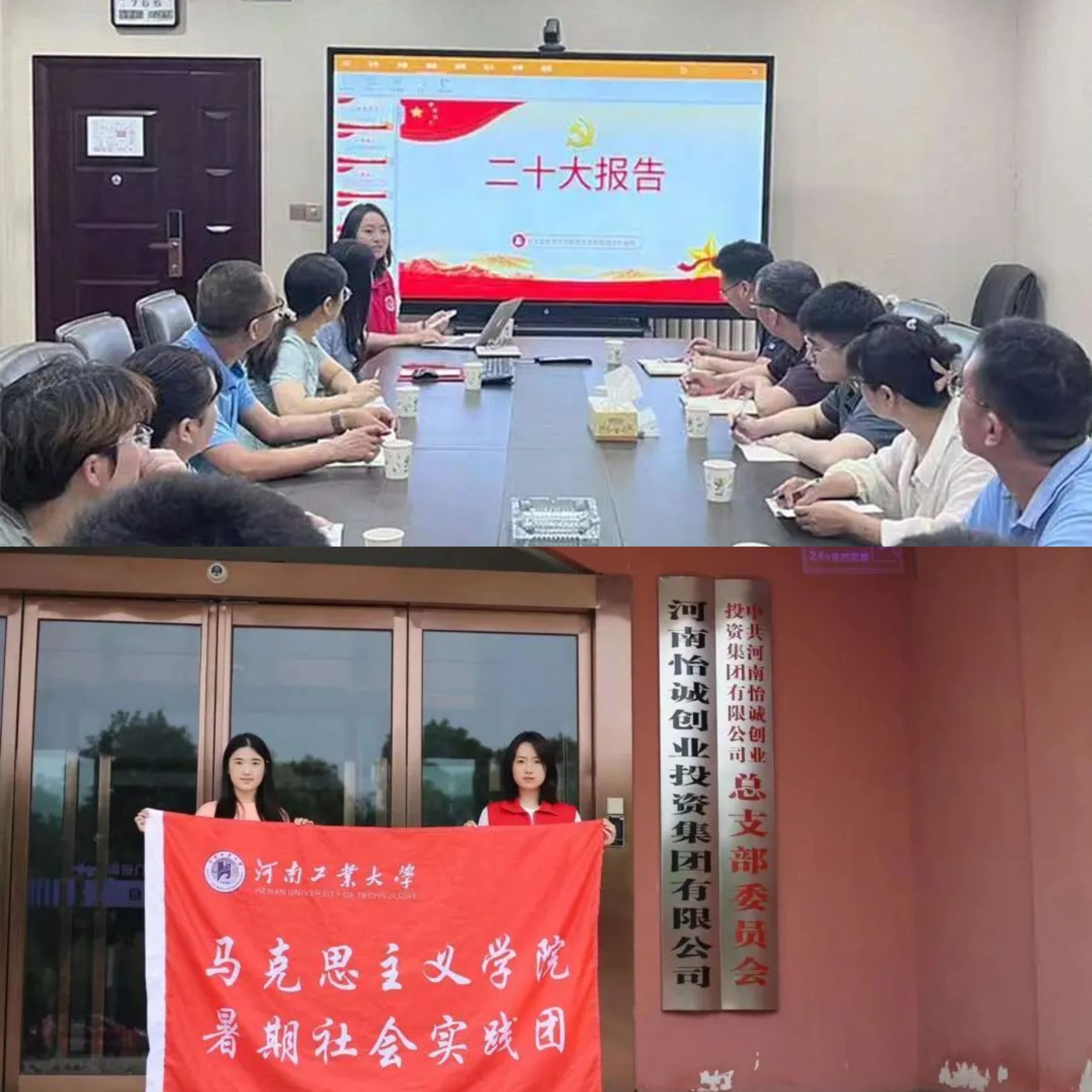 研马致行——二十大精神宣讲团采用一场一改、一场一策的方针,到新乡市大召营幼儿园、前高庄村党支部和巩义市三彩实验学校、怡诚投资集团有限公司进行理论宣讲,在中国共产党成立102周年之际用青年实际行动向祖国献礼。