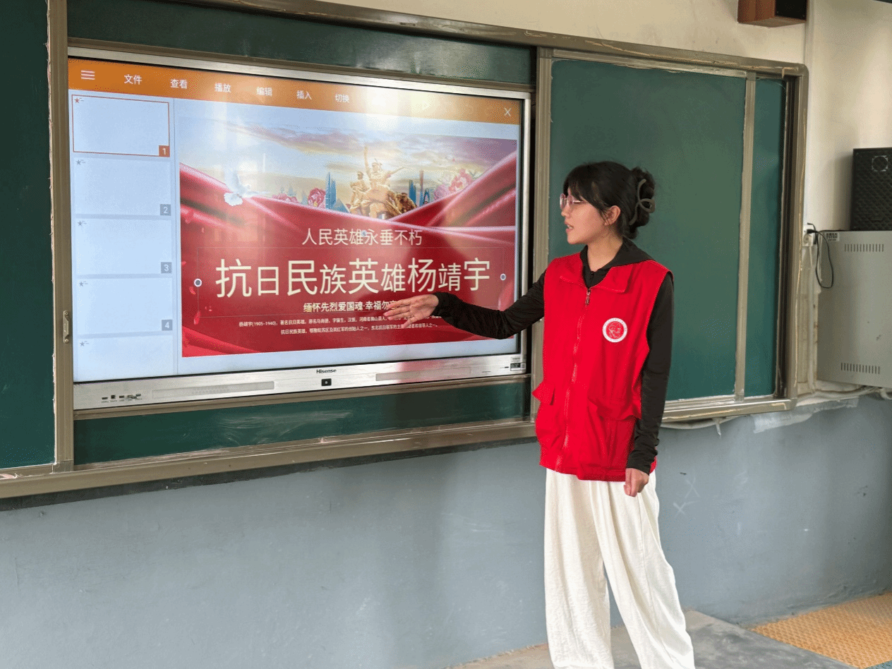 在辛店乡第一小学,实践团队成员原瑞敏以杨靖宇将军的革命事迹为例,以色彩鲜艳的图画和感人的红色歌曲,结合历史背景、影片展播等形式,使孩子们更直观的了解历史,感受红色文化。课堂上,孩子们听得津津有味,不时举手提问,充满稚气的话语和认真的神情让人倍感欣慰。辛店乡第一小学校长马校长对实践团队表示热烈欢迎,并表示他们不仅为学校带来了新的教育理念与活力,还为孩子们的心灵种下了梦想的种子。未来学校将以此为契机,进一步加强与高校的合作,吸引更多优秀青年志愿者来到乡村,共同为提升乡村教育质量、促进教育公平贡献力量。