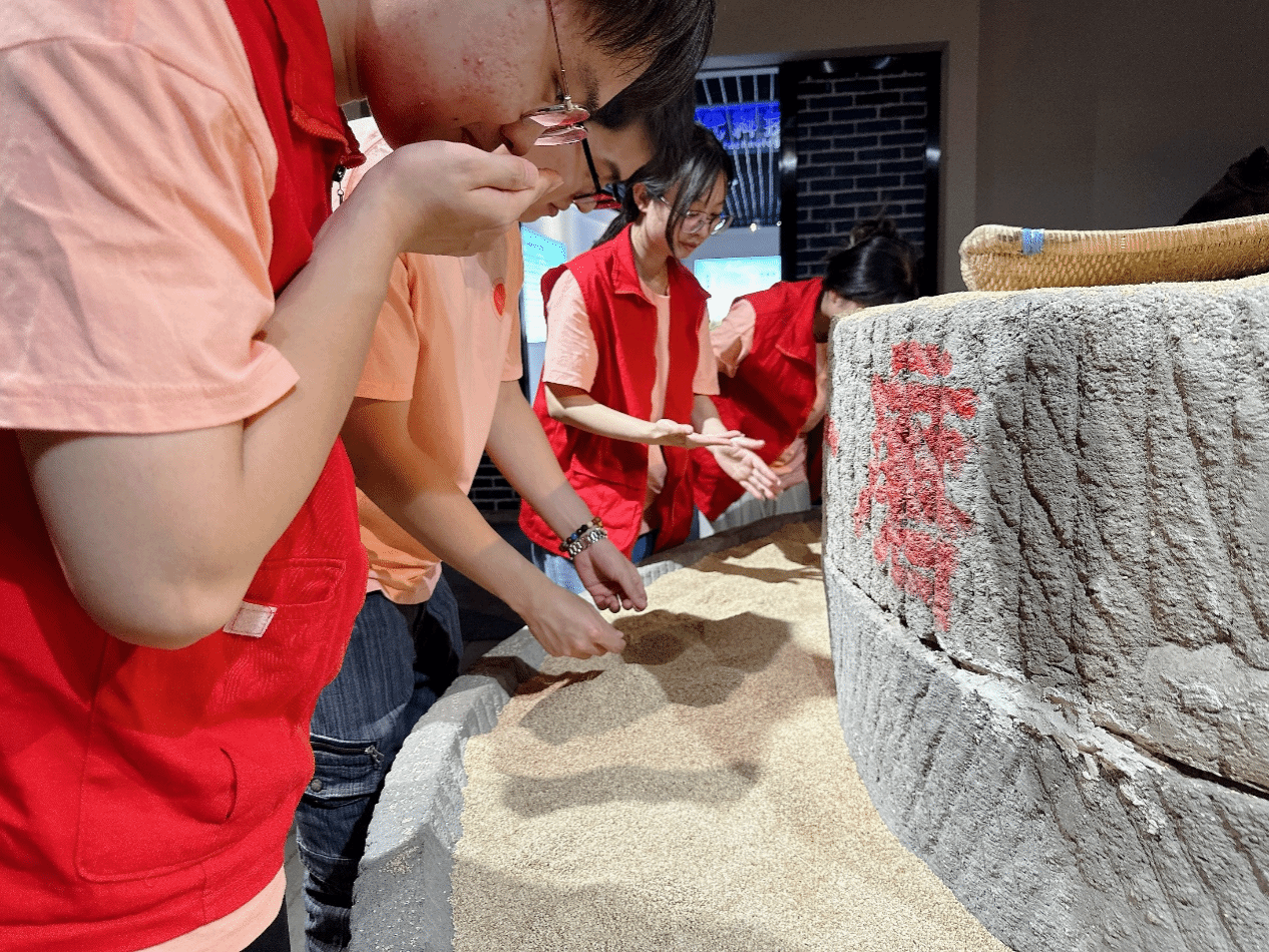 在中国白芝麻博物馆,团队成员不仅亲眼目睹了古代芝麻种植的农具和传统的芝麻加工设备,还通过互动式展览,体验了白芝麻从播种到收获的完整过程。博物馆中的多媒体展示更是生动地呈现了芝麻在中医、饮食文化以及日常生活中的广泛应用。调研过程中,团队走访了当地的芝麻产品加工企业,了解了芝麻油的提炼过程、芝麻酱的制作工艺以及芝麻糖等传统特色食品的生产流程。这些芝麻产品不仅丰富了当地的食品市场,也成为了推动乡村经济发展的重要力量。中原百谷首,平舆芝麻王。平舆县蓝天芝麻小镇作为以芝麻生产和加工为主的乡村振兴产业的典范,持续助力当地乡村振兴事业芝麻花开节节高。