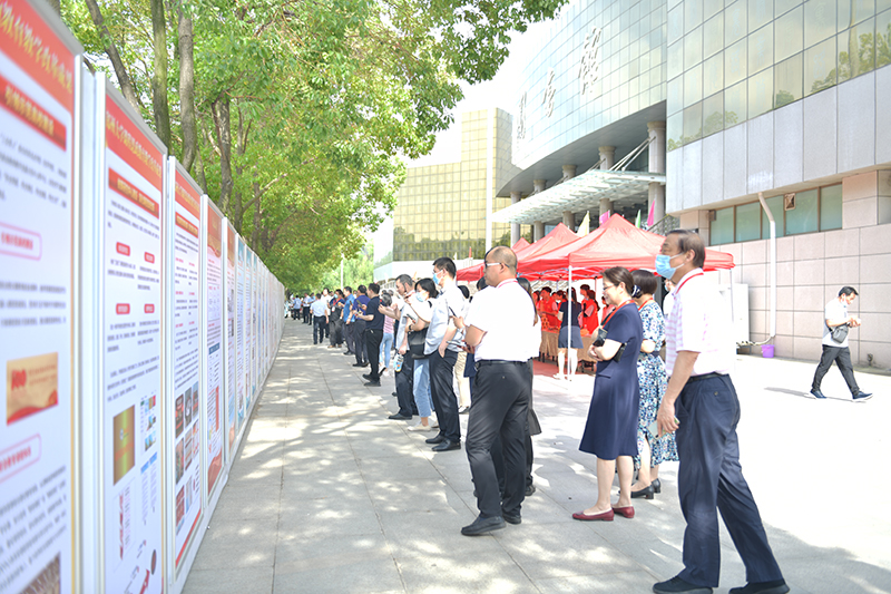 与会人员分组进行研讨和经验分享,并现场观摩了全省10所课程思政示范校建设阶段性成果展和南阳理工学院课程思政建设成效。