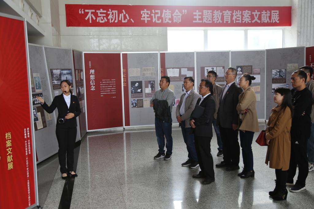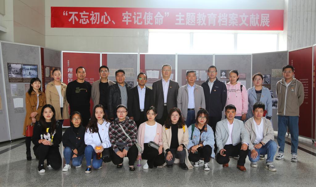 党政领导班子和师生党员在学院党委书记刘广明、院长蒋笃君带领下到办公楼二楼展厅参观“不忘初心、牢记使命”主题教育档案文献巡回展。